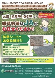 防草シート施工など、場所や状況に応じた最適な対策をご提案。 地域に根ざしたJAが、安心・丁寧に対応いたします。