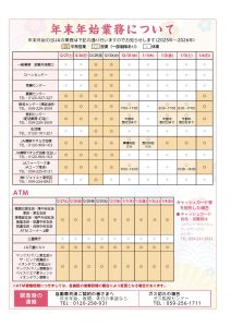 年末年始の当JAの業務は下記の通り行いますのでお知らせします。