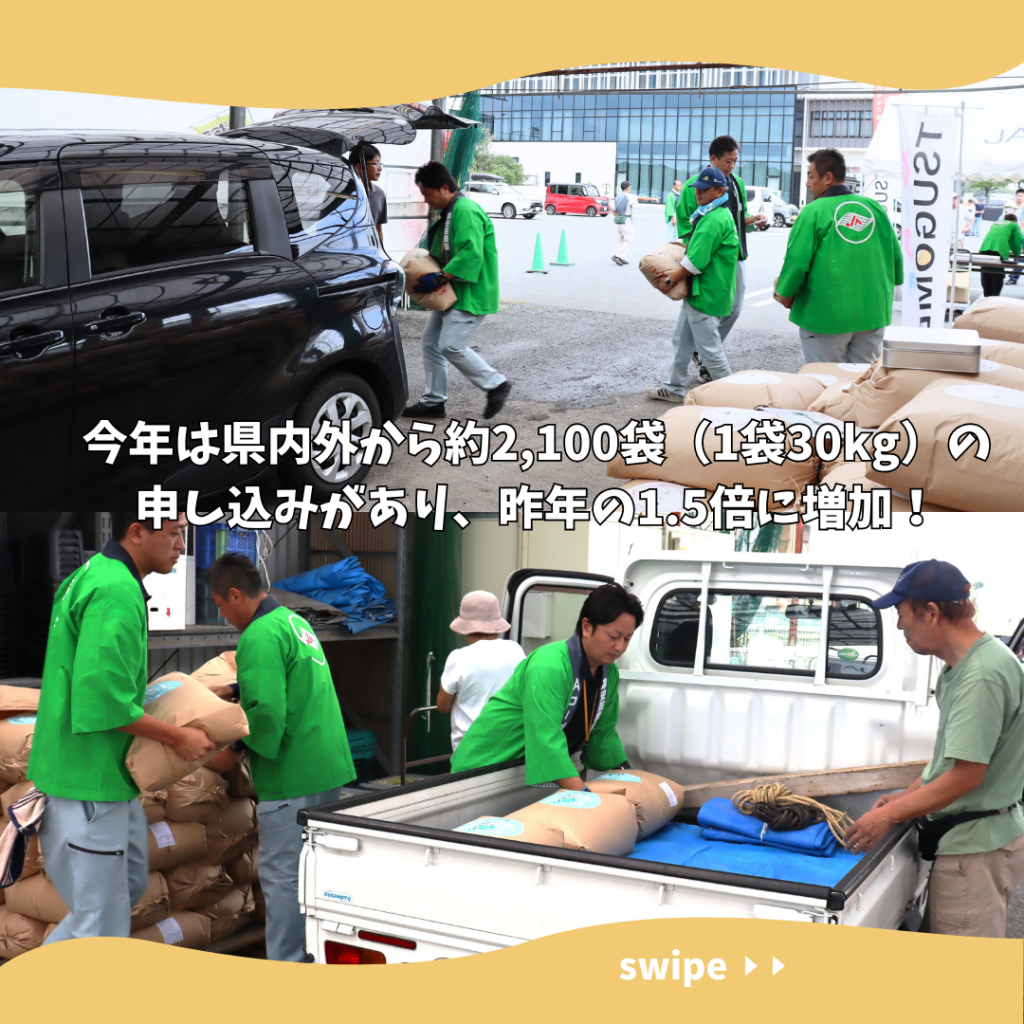 今年は県内外から約2,100袋(1袋30kg)の申し込みがあり、昨年の1.5倍に増加😳