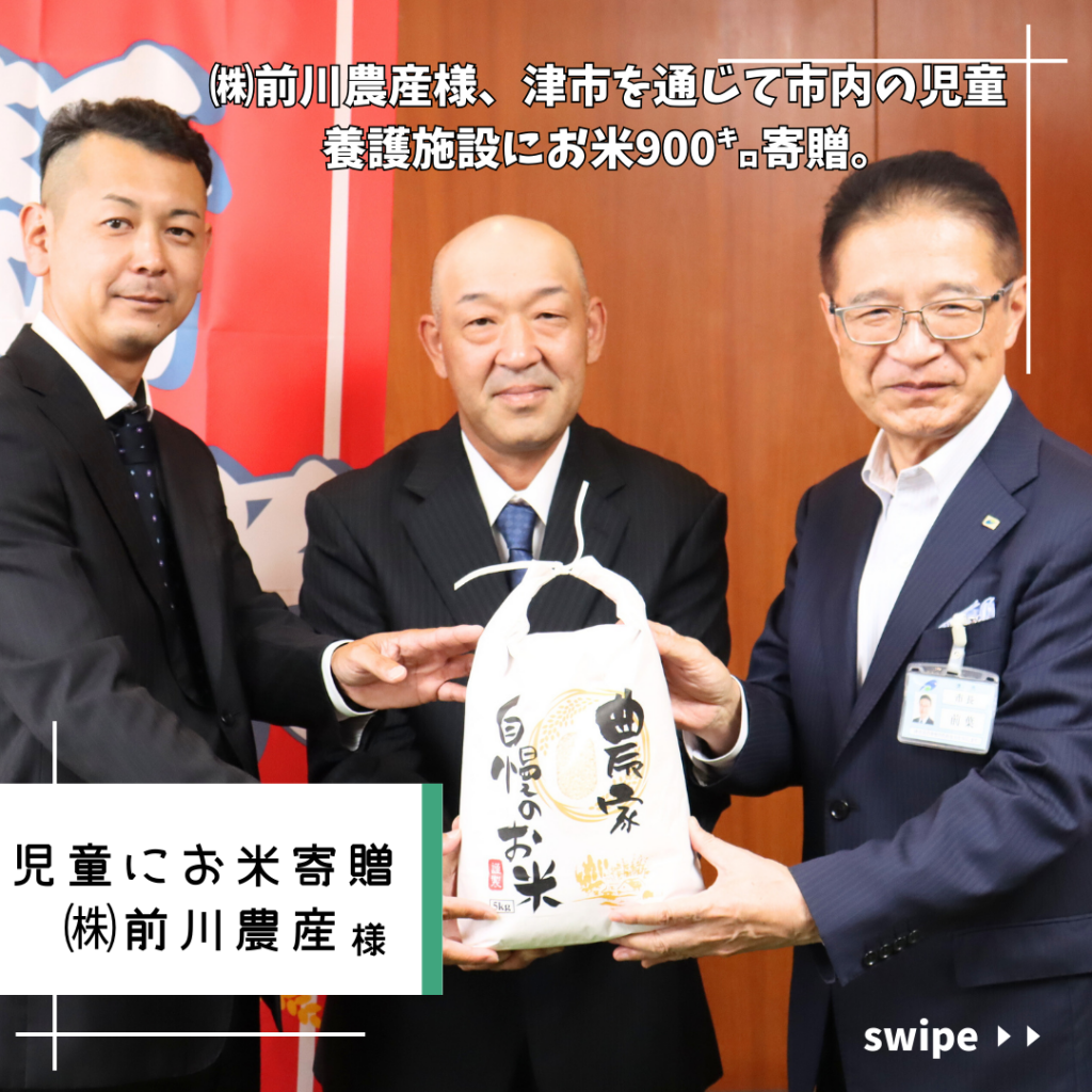 津市の農業法人・㈱前川農産さんが、9月下旬に2025年産の玄米900kg(うるち米600kg・もち米300kg)を津市に寄贈されました✨