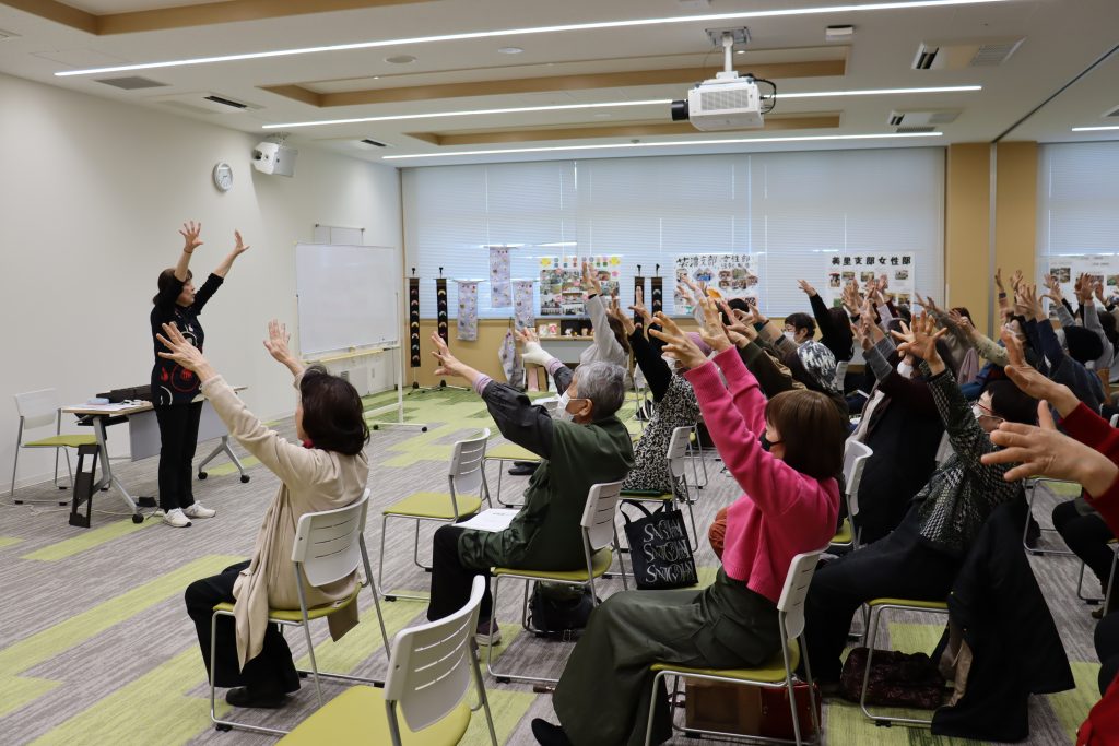 講師の動きに合わせて体を動かしながら歌い、頭を使う体操も行い、楽しい時間を過ごしました😊