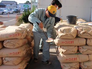 令和2年産大豆の出荷数量は11,000袋(1袋30キロ)を計画し、4箇所の検査場所で2月中旬まで農産物検査員27人が検査業務を行います。